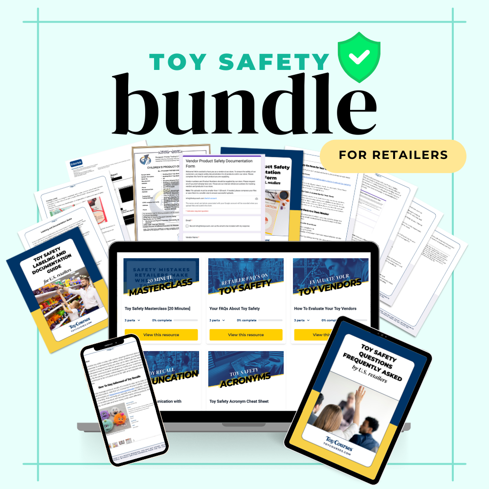 The Toy Safety Bundle for Retailers: Built to empower store owners to confidently evaluate vendors and stock compliant toys that protect their business reputation.
